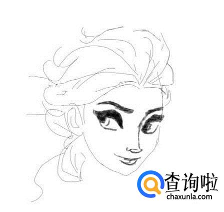 再在眼睛的下面画出艾莎公主的鼻子,并再在鼻子下面画出艾莎公主的嘴巴,如图所示: