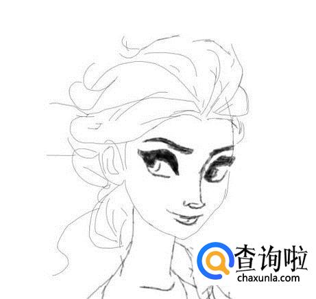 在头部下面再画出艾莎公主的脖子及身体部分,这样简笔画冰雪奇缘艾莎公主就画好了,如图所示: