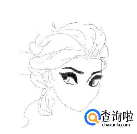 首先画出艾莎公主的头发,然后在头发上画出艾莎公主的头发丝,如图所示: