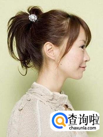 也可以扎一个现在最流行的半丸子头,留一半头发,扎起来一半头发,然后将扎起来的那部分头发简单地挽起来,就可以了。