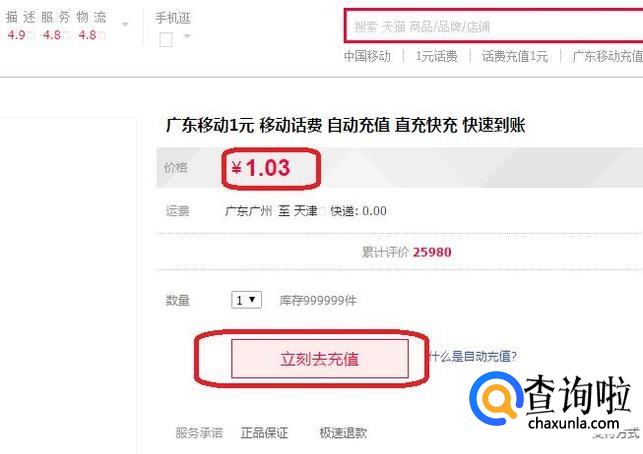 点击进入购买页面,我们点击“立刻去充值”,支付1.03元,输入手机号就可以充值1元成功了。
