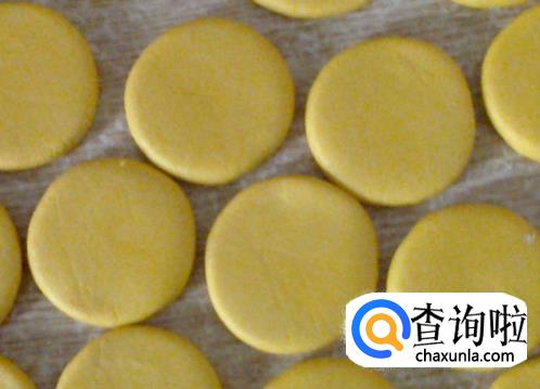 取鸡蛋大小的面团搓揉成团后按扁,做成小圆饼。