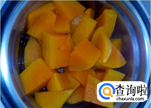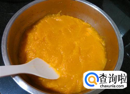 蒸熟后取出,南瓜用勺子捻成南瓜泥。