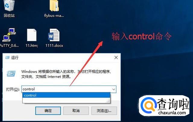 首先我们按CTRL+R组合键打开运行界面,在输入框中输入control命令,如下图所示