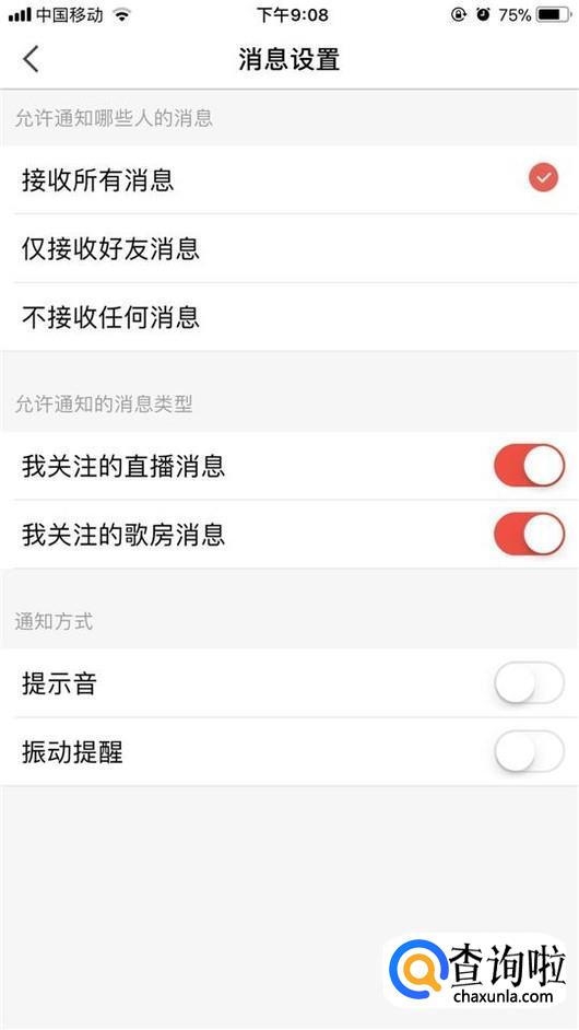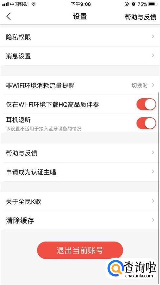 全民k歌怎样关闭我关注的直播消息 清除缓存