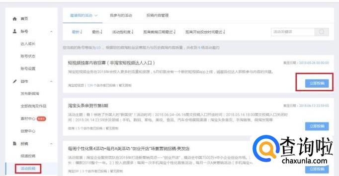 在菜单栏右侧,投稿-活动投稿中,可以选择一个活动进行投稿,投稿成功就可以得到相应的稿酬