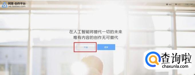 首先在任意搜索引擎搜索淘宝达人并进入,点击“开通”,如图所示