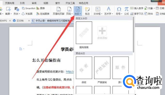 选择一个合适的水印,点击一下即可将其插入到文本下面,如图所示。