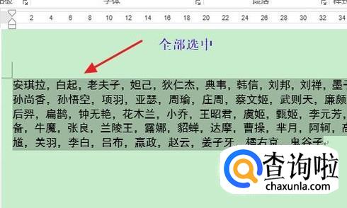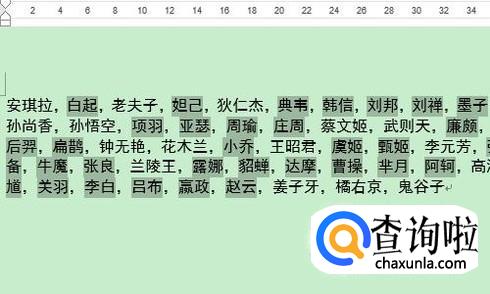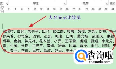 首先小编提供一种最为快速的方法,如下图一我们看到了一张全部为人名的word文档,看上去有点乱,接着我们将这些人名全部选中;