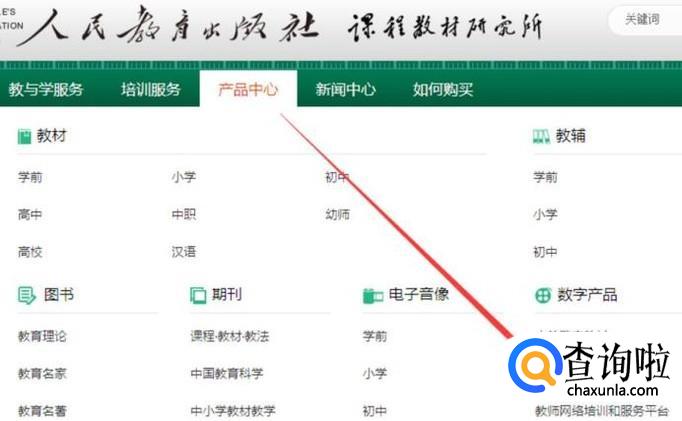 进入后如图所示,在最上面的工具栏中选择产品中心,在下面的数字产品选择人教e学。