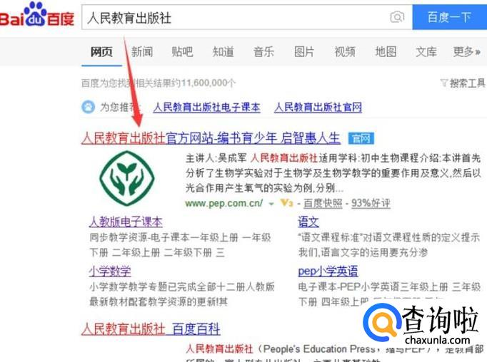 首先在网站输入人民教育出版社,在网页界面上,进入人民教育出版社的官网。