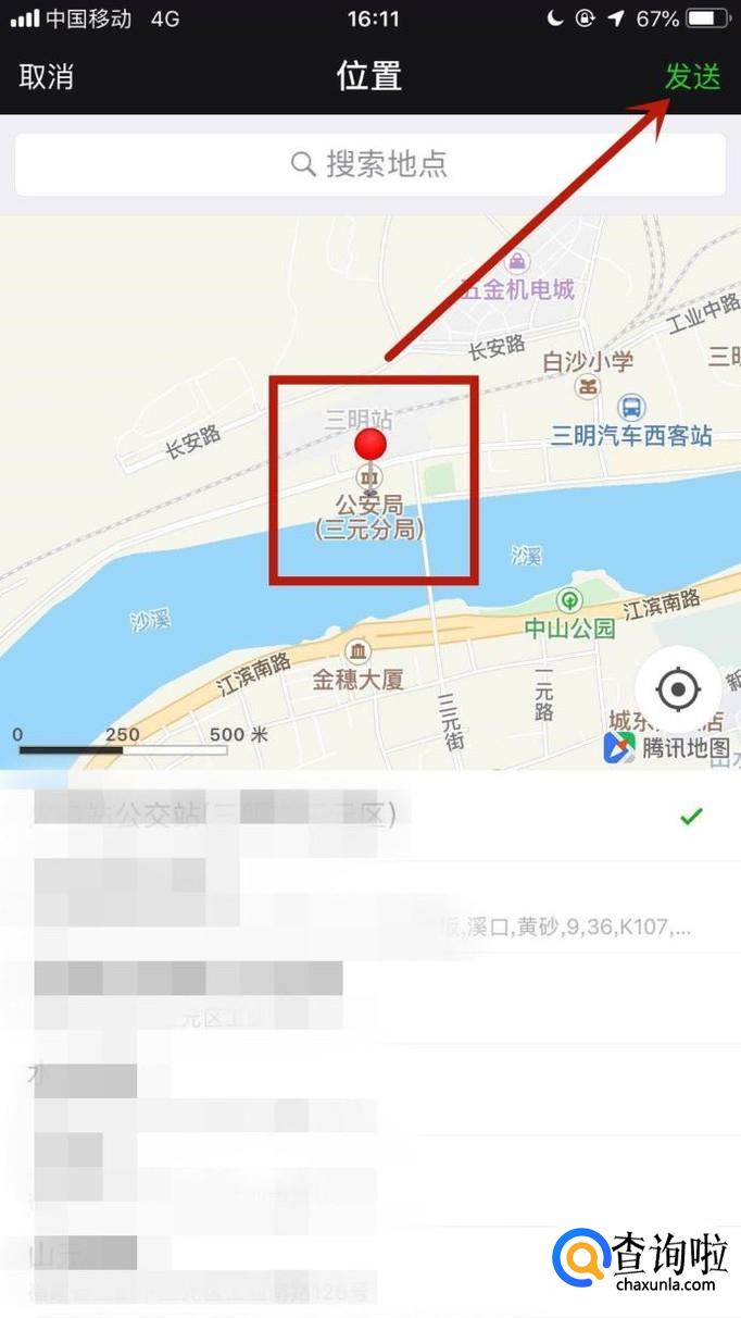 然后在地图上选择任意一个位置,并点击发送就可以了。