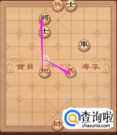 黑方将右走一步,解决棋局局势,如图所示。