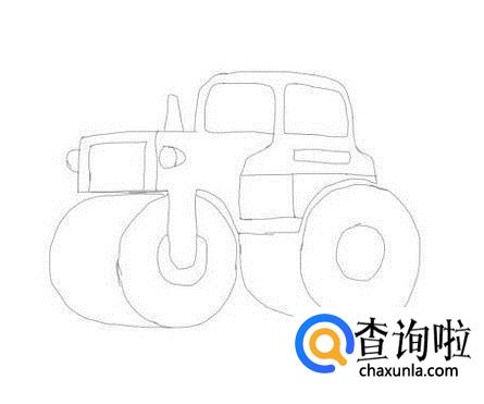再在驾驶室上画出窗户,然后在画出压路机上面的灯,如图所示: