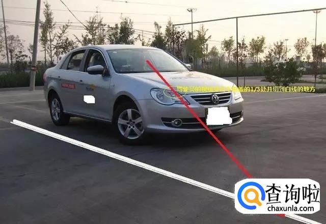 下一步需要做的就是找到30cm。其实靠边停车找30cm的方法和科目二坡道定点时用的方法是一样的。就是当右侧车头的三分之一处与边线重合时,此时刚好是右侧车轮距离边线30cm的距离。