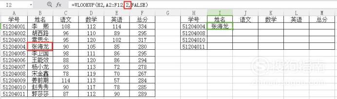 需要知道这个学号“学生姓名”,只需要把第3个参数改为“2”,表示查找范围第2列意思。
