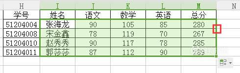 鼠标放在图中红框位置,当鼠标图标变成“+”时,长按左键,鼠标向下拖动,到M5后,松开鼠标。图中可以看出其他学号同学的相关信息也显示了出来。