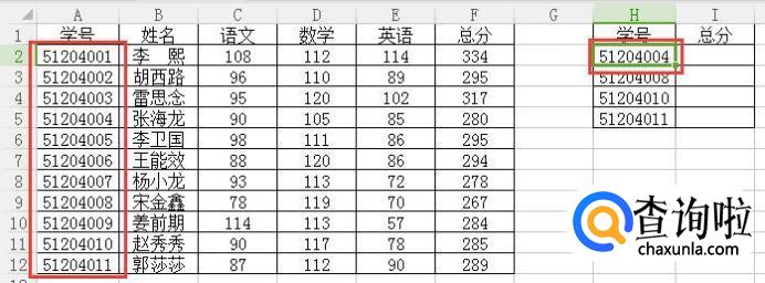 输入值H2,表示要以H2“51204004”为准,在A2-A12中查找H2“51204004”中内容所在行。