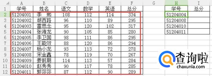 输入值A2:F12,表示要在A2-F12的范围内查找。A2表示开始,F12表示结束。因为需要查询的是总分,所以范围到F12;要是只需要语文的成绩那么范围可以改为A2:C12。