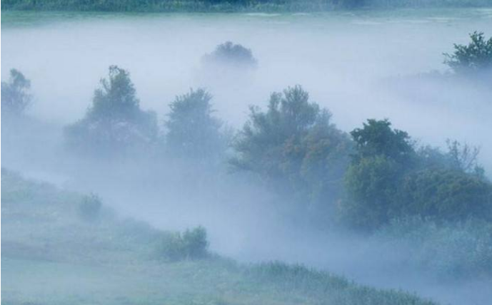 雾是大量充沛的水汽被冷空气冷却,达到饱和状态后,凝结成无数微小水滴悬浮在近地面空气中的现象。这些水汽可以是从浩瀚的海洋、陆地上的江河湖泊、润湿的土地表面和茂盛的植被上蒸发生成;也可以从别处的暖空气流动过程中带来。这些小水滴的直径最小的只有千分之几毫米,最大的也不过1/10毫米。