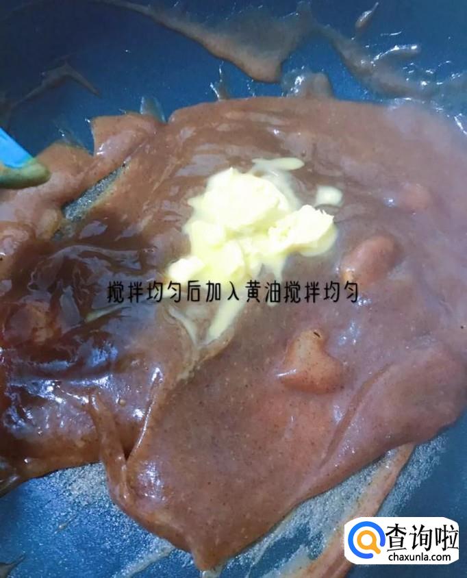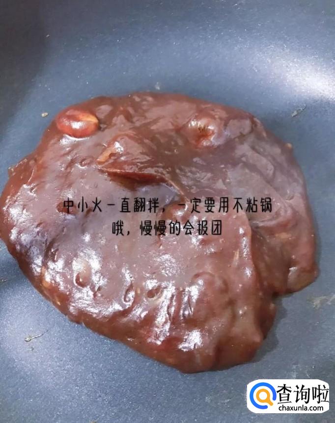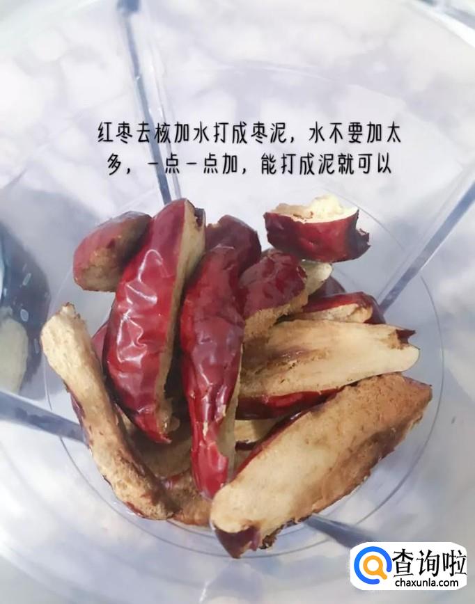 然后把红枣去掉里面的核打成枣泥,如下图所示。小贴士:大家在打枣泥的过程中,可以适量加入一些清水。