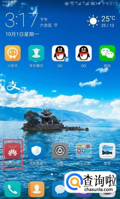 首先,我们打开我们的华为手机,然后我们点击应用市场;