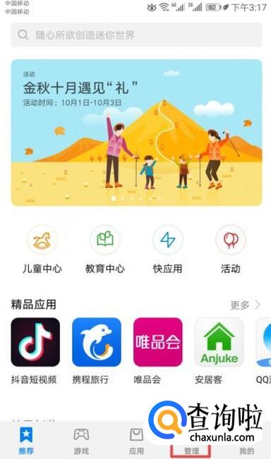 弹出的界面,我们点击应用管理;