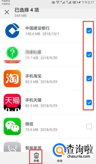 然后我们选中我们想要批量卸载的应用软件,之后我们点击卸载就可以了。