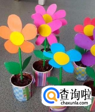 用纸杯做花盆,用彩纸做花瓣,做出一朵朵五颜六色的小花朵,这些花朵就像在比喻自己也是祖国的花朵一样呢,真是漂亮极了。