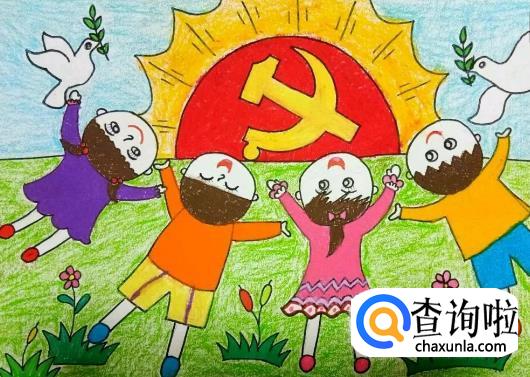 几个小朋友一起画了一幅非常可爱的画,四个小朋友相拥着,这是对我们共产党的崇敬啊。