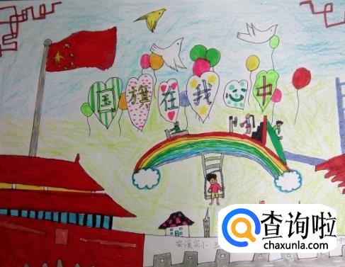 几个小朋友花了一下午时间,画了一幅天安门升着红旗的画,对于小朋友们来说,这应该就是祖国的神采了吧。