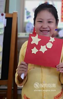 一个小朋友通过剪纸的方式做出了一面国旗,虽然不是很标准,但是也是小朋友对祖国的热爱啊。