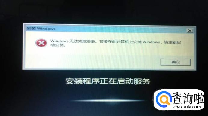 有可能是windows安装配置出错的原因,导致windows系统安装失败。而这个配置会受到当前运行程序的影响。所以,可以重新启动电脑,重新运行win7系统安装程序试一试。
