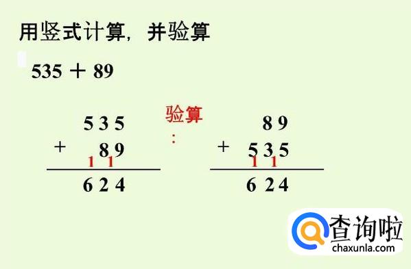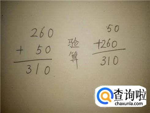 第一种加法验算方法:在加法运算中,我们可以使用颠倒两个加数的位置进行验算。