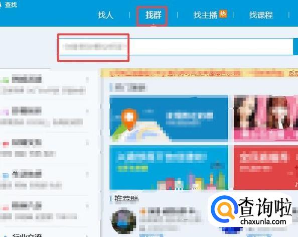 之后我们点击找群,然后我们点击搜索框;