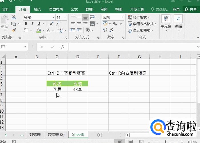 使用快捷键Ctrl+D表示向下填充内容,使用Ctrl+R表示向右填充内容。