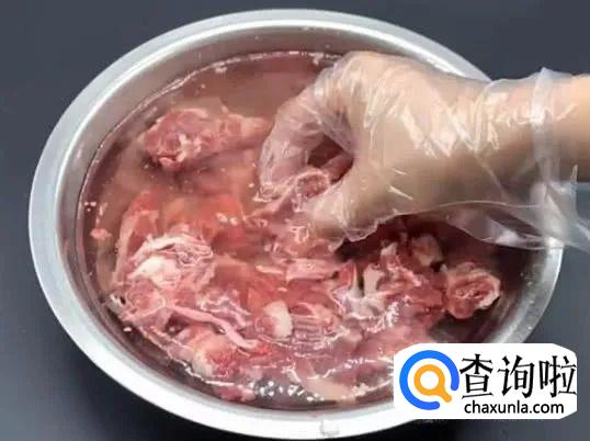 买来的排骨要先在清水里泡一个小时,这样可以泡出猪肉的血水和淋巴,还可以清洗猪肉。