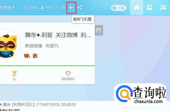 然后在窗口的顶部找到“飞机”的图标,点击复制飞机票。