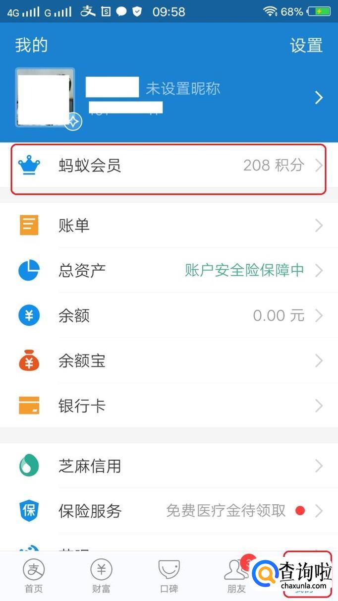 进入了个人设置界面,如图所示,点击“蚂蚁会员”。