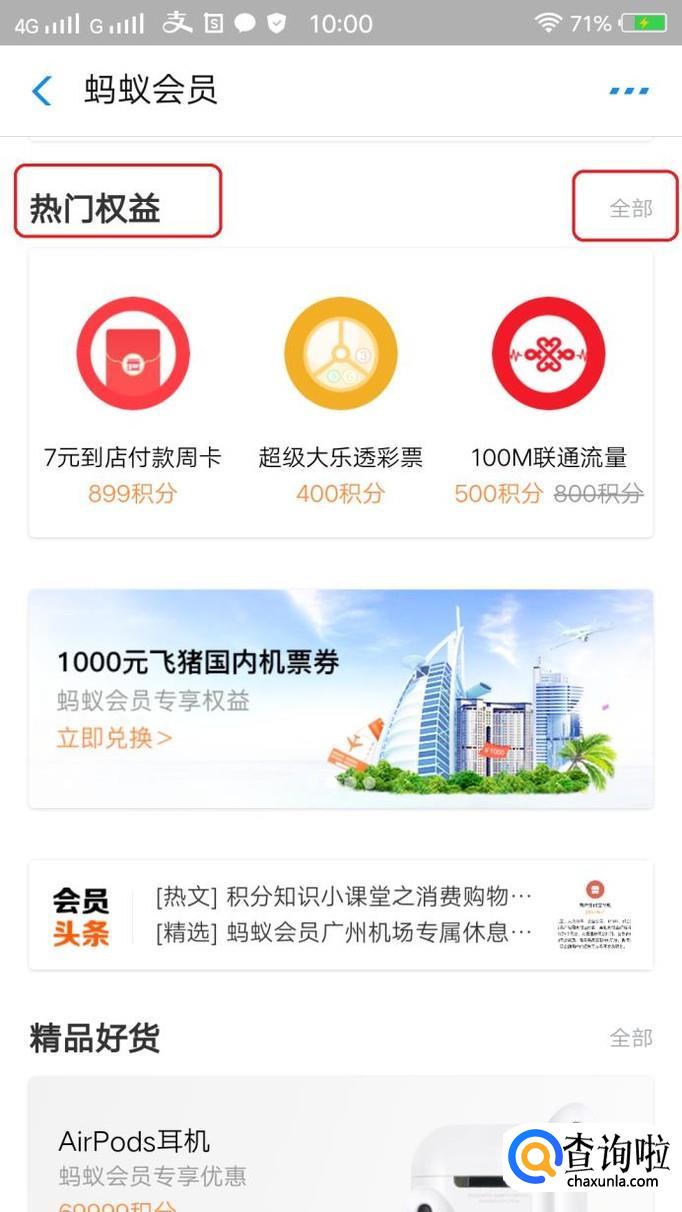 在会员页面,往下划动页面,直到看到“热门权益”内容,如图所示,我们点击“全部”。
