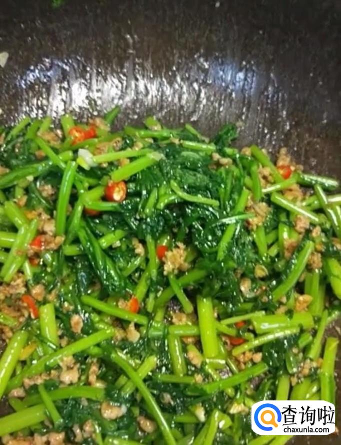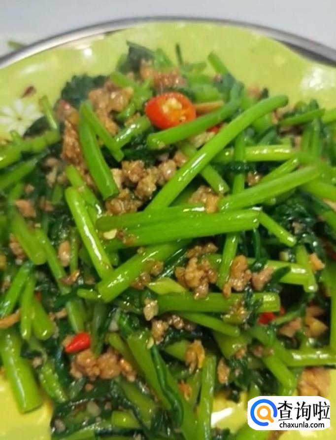 茼蒿,肉末,葱姜蒜,蚝油,十三香,盐,鸡精,小米辣,酱油