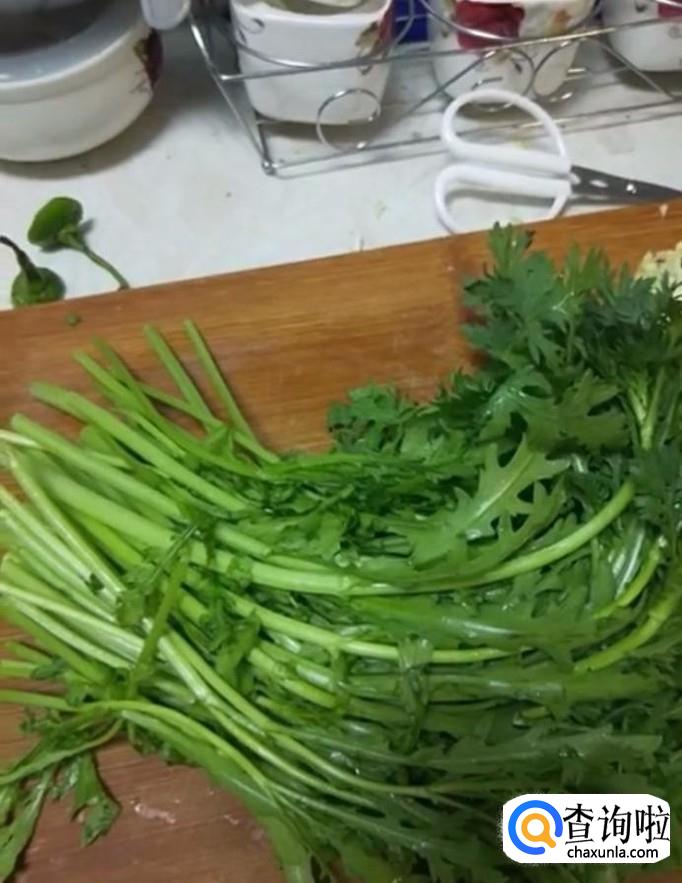 首先我们将茼蒿清洗干净,用刀切段备用