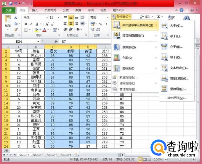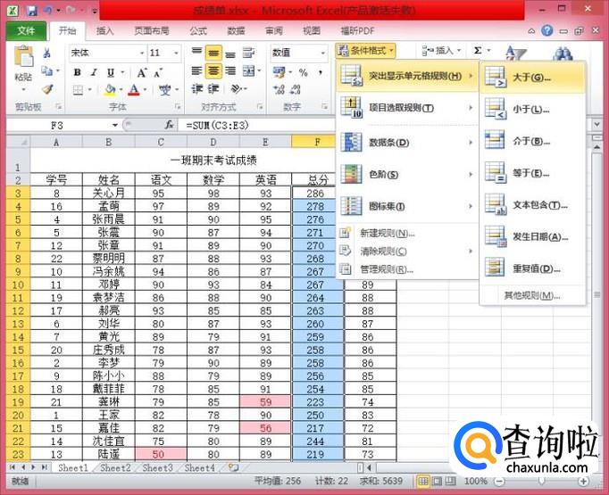 同样,找到”条件格式“中的”突出显示单元格规则“,但现在我们要选的是”大于“