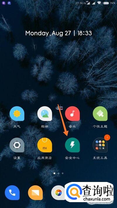 打开红米手机的“安全中心”,其位置一般在桌面的第一屏。