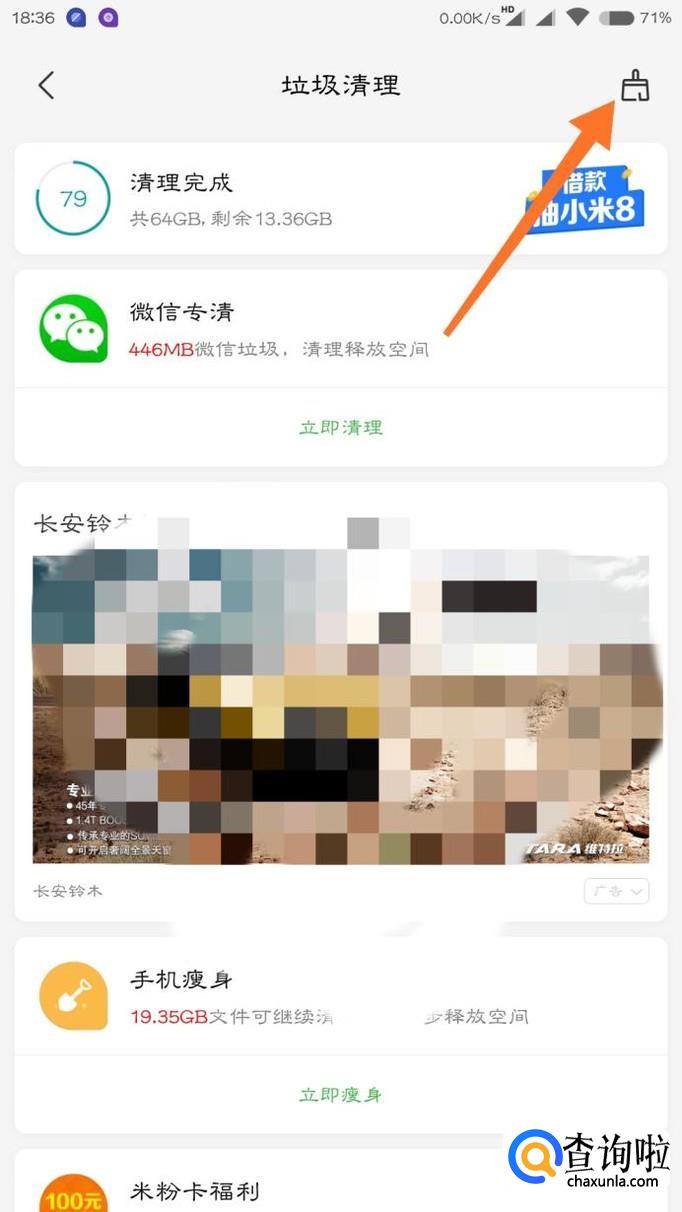 点击第一个垃圾桶一样的图标,即清理垃圾。