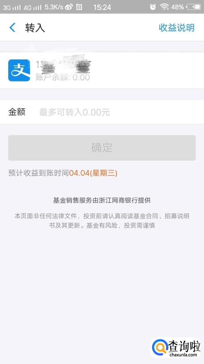 可以看到,余利宝就是针对支付宝余额而设立的,只能从支付宝账户里转入。