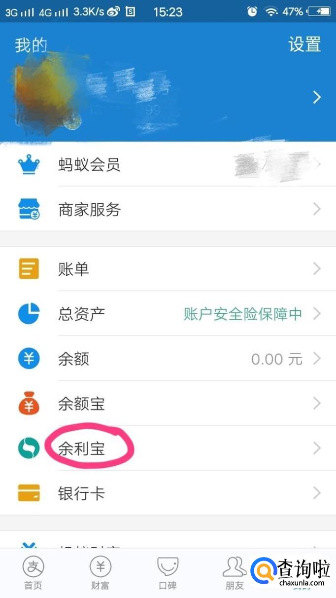 点击进入“余利宝”。