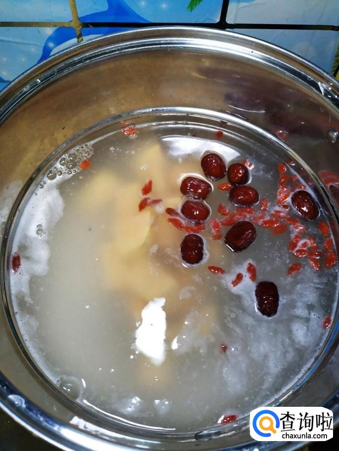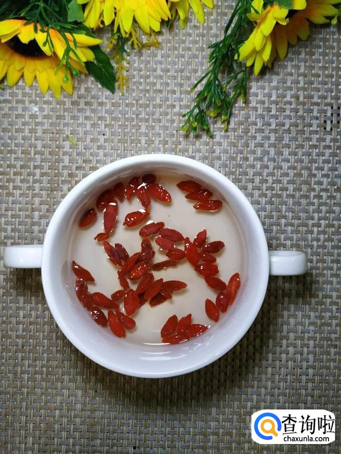 将泡好的枸杞子,放入锅中,枸杞子可以增加粥的营养。