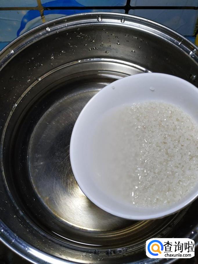 汤锅中放入适量清水,然后将泡好的大米倒入锅中。
