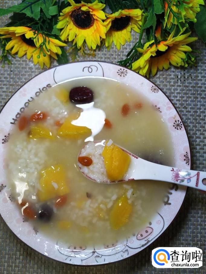 大米适量,红薯适量,红枣适量,枸杞子适量,冰糖适量。